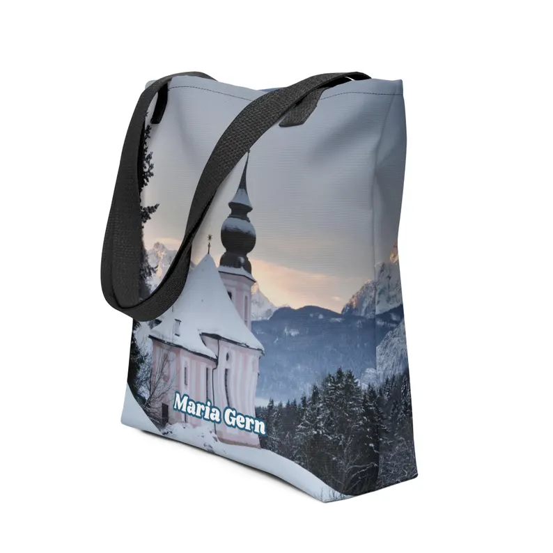 Diese Watzmann Einkaufstasche Maria Gern ist eine vielseitige und hübsche Ergänzung für jeden Look. Vollflächig bedruckt mit der beliebten Winteransicht von Maria Gern auf der einen Seite und dem Watzmann auf der anderen Seite...