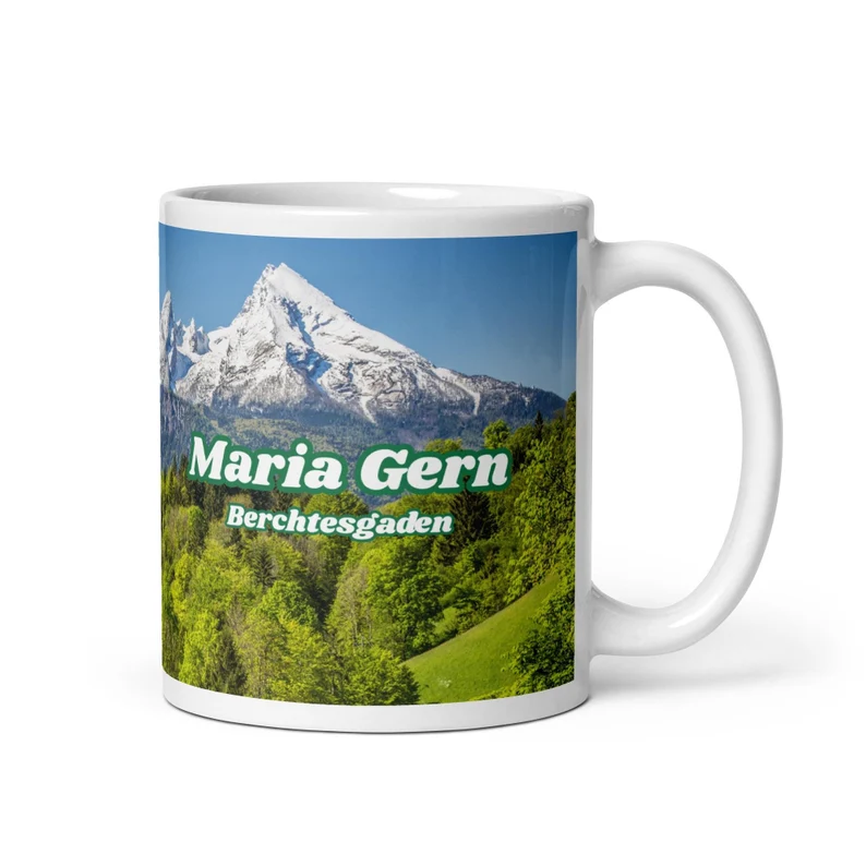 Grüße aus Maria Gern, dem beliebten Ausflugsziel in der Nähe von Bischofswiesen! Mit im Bild die Wallfahrtskirche Maria Gern im Markt Berchtesgaden. Diese hübsche Tasse...